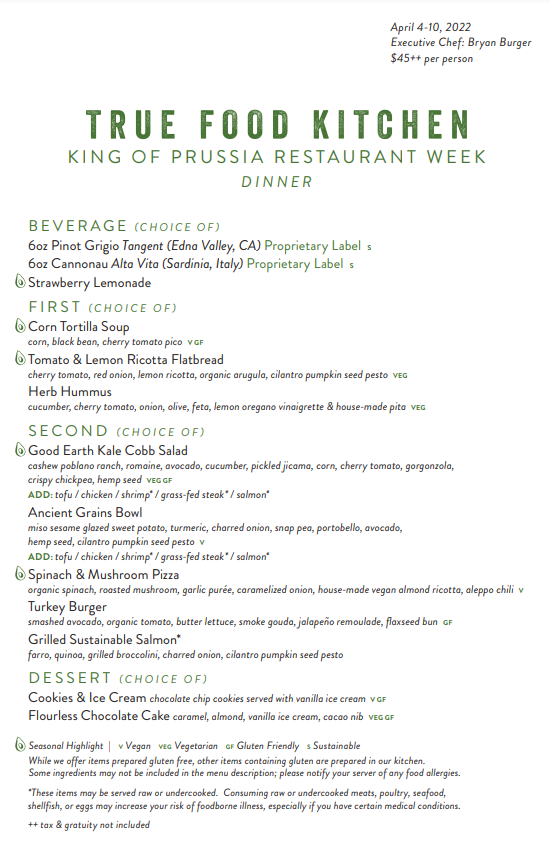 True Food Kitchen King Of Prussia Restaurant King Of Prussia Pa Opentable